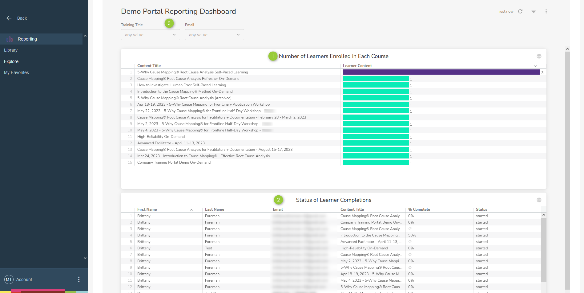 - Report on Completion Progress of Each Learner in Each Enrolled Course